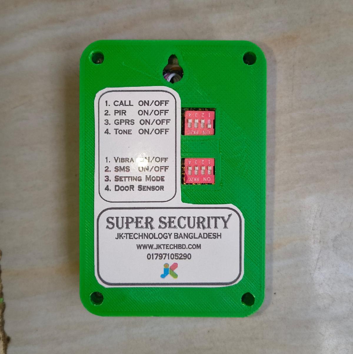 Super Security একটি পোর্টেবল সিকিউরিটি ডিভাইস যা মূলত ঘর, অফিস, দোকান বা লকারের নিরাপত্তা নিশ্চিত করে। এতে তিনটি ভিন্ন ধরনের সেন্সর (PIR, Vibration, Reed) ব্যবহার করা হয়েছে। ডিভাইসটির বিশেষত্ব হলো এর Smart Trigger Filtering সিস্টেম, যা ইঁদুর বা সামান্য কম্পনের মতো অপ্রয়োজনীয় সংকেতকে (False Trigger) বাদ দিয়ে কেবল প্রকৃত বিপদ শনাক্ত করে ব্যবহারকারীকে কল এবং SMS-এর মাধ্যমে সতর্ক করে।